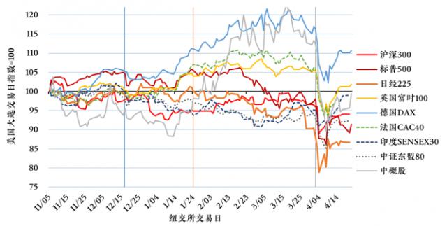 图6:关税"手术"带来的全球股市剧烈波动;来源:Wind。从左到右三个分界线分别对应:12月美联储议息会议,1月末DeepSeek冲击,以及最近的特朗普对等关税日。