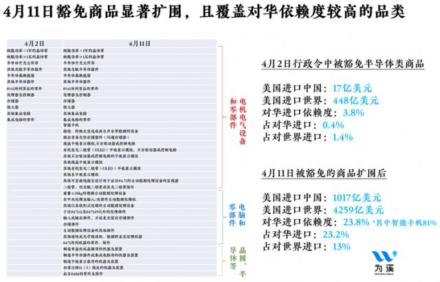 图12:4月11日总统行政令扩大了半导体类商品的豁免范围;来源:基于USITC数据计算。