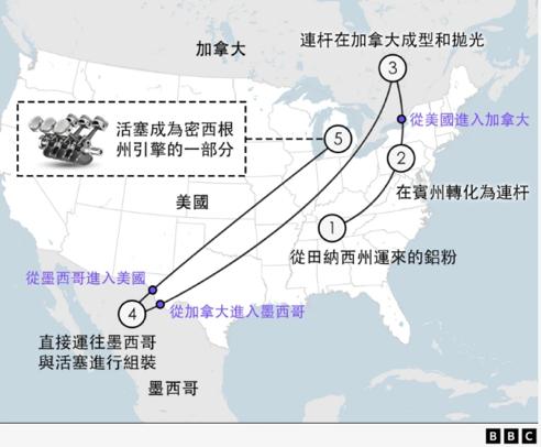图14:北美汽车产业的供应链多次穿梭边境